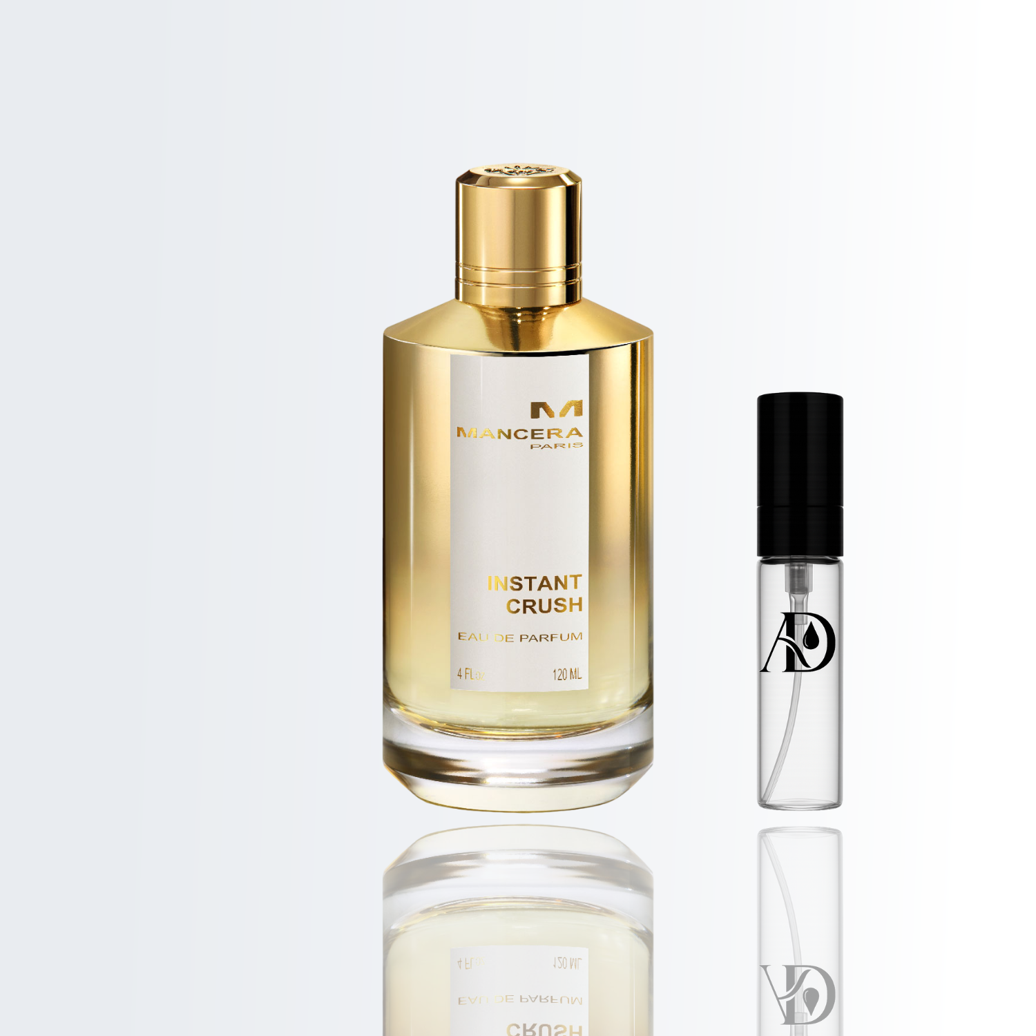 Instant Crush е един от най-популярните аромати на Mancera – съблазнителна комбинация от източни подправки и сладки акорди, която буквално пленява от първия миг. Открива се с ярко начало от цитруси и джиндифил 🍋🌶️, който придава свежест и енергия. В сърцето се разгръщат деликатни флорални нотки на роза и жасмин 🌹, вплетени с кехлибар и дървени нюанси за топлина и дълбочина. Основата е гурме и изкусителна – ванилия, бял мускус и сандалово дърво, които оставят дълготраен и кадифен шлейф ✨.